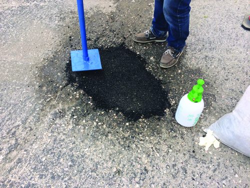 - Keep the product a little higher than the street level. The traffic will compact the patch. However, if heavy vehicles are expected, allow one day for the material to set, to avoid dispersing.